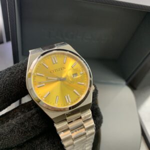 CITIZEN GENTS DATE SILVER CHAIN YELLOW DIAL