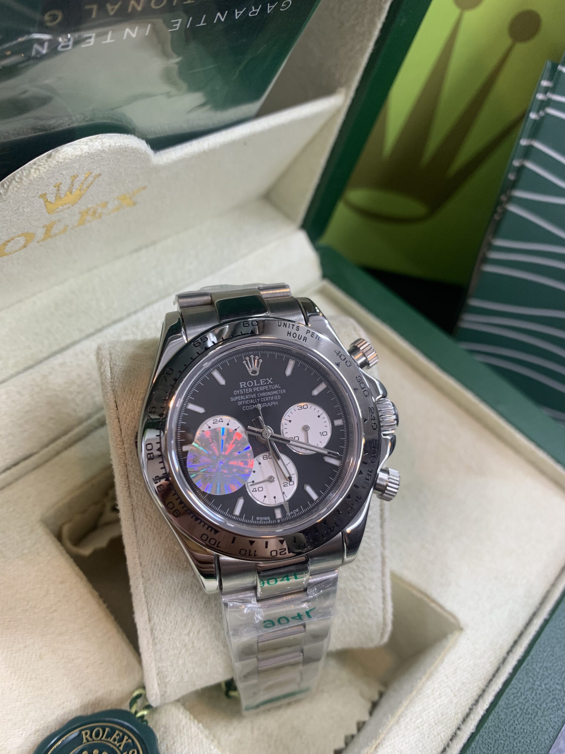 Rolex Daytona Automatic Master Quality Chronograph Working Silver Color Black Dial Stainless Steel Chain Master Lock With Normal Box